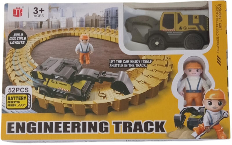 52 db-os építhető munkagéppálya munkagéppel, figurával. +3 éves kor felett ajánlott.